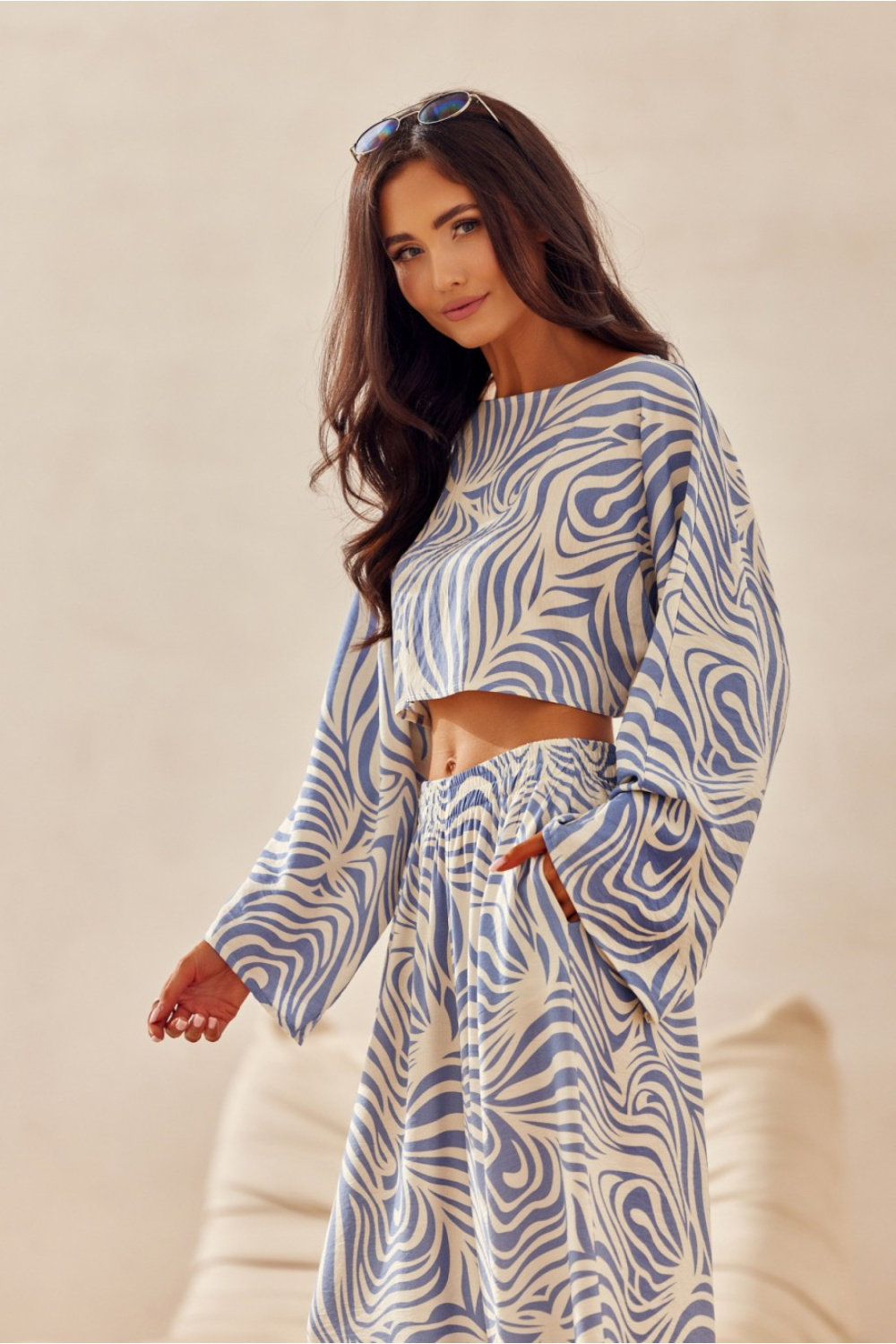 Lightweight Bianca blouse with a loose, short cut provides comfort on hot summer days, thanks to wide sleeves and a round neckline that ensure proper ventilation.