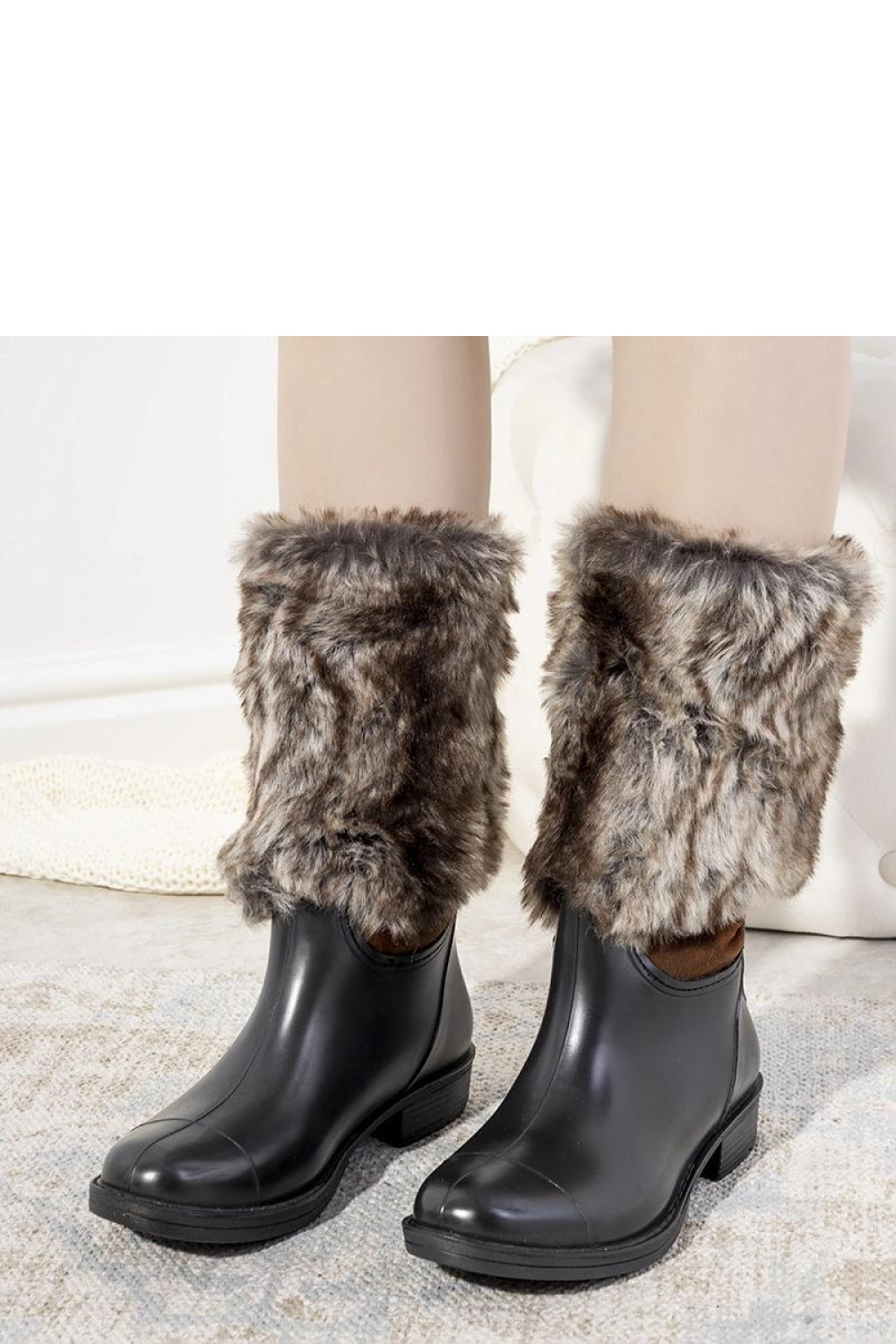 Black ankle boots with fur lining from Corrales are the perfect choice for rainy autumn days. This model is made of high-quality rubber, which guarantees comfort and protection against moisture. The boots are decorated with a worn effect, giving them a characteristic look. Additionally, the fur lining inside the shoes makes them warm and pleasant to the touch. The sizing is standard, so it is worth choosing your size. The boots have a slip-on closure, which makes it easy to put on and take off. They will work perfectly for both everyday wear and evening outings. Ideal for autumn and winter!