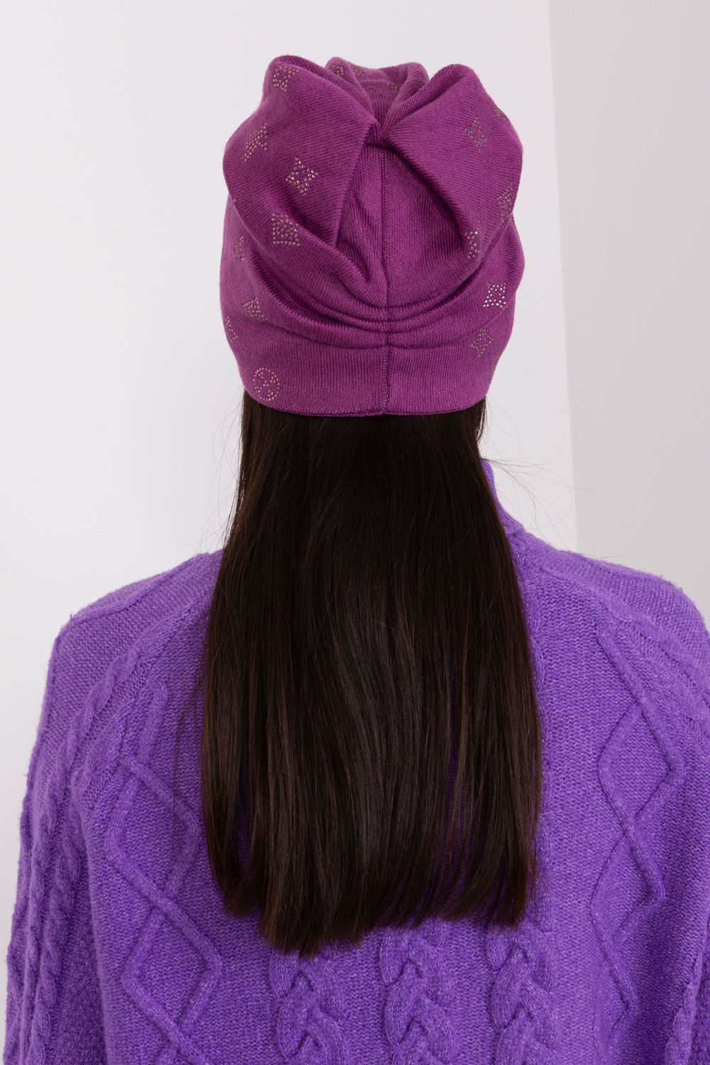 Warm winter women’s beanie hat with cashmere, with decorative rhinestone application.