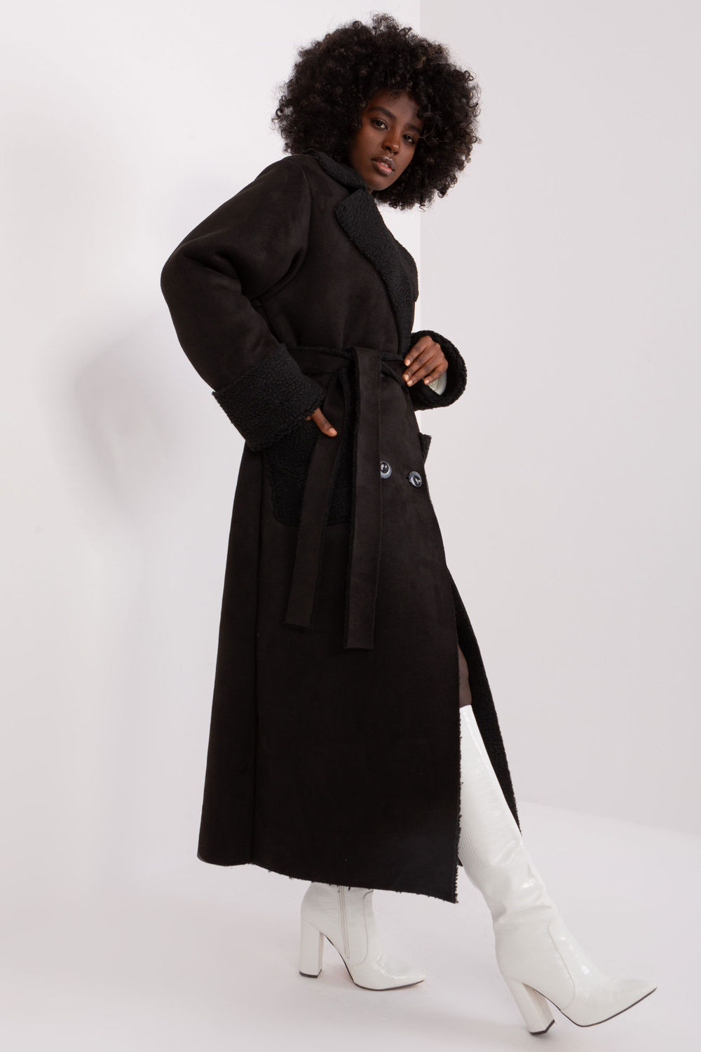 This coat is not only a practical solution for winter days, but also an expression of personal style. The coat is designed in a casual style, which makes it perfect for everyday situations, both casual and work. However, it is additionally enriched with a touch of elegance, making it a versatile choice. The material used to create the coat is characterized by a varied texture, which gives it a unique character. It is the subtle details that determine its uniqueness. This coat has insulation, which provides an excellent barrier against the cold of autumn and winter. Long sleeves and buttons protect against unpleasant weather conditions. The ankle length accentuates the silhouette while providing protection from the cold. The tie belt allows you to adjust the waist circumference, which allows you to adjust the coat to individual preferences and figure. The slip pockets not only serve a practical function, but also give the coat a casual feel. The lined lapels add to its elegance, creating a harmonious whole. This sheepskin coat is a proposal for women who appreciate both functionality and fashionable design. It will be perfect for winter days, adding style to any everyday styling.