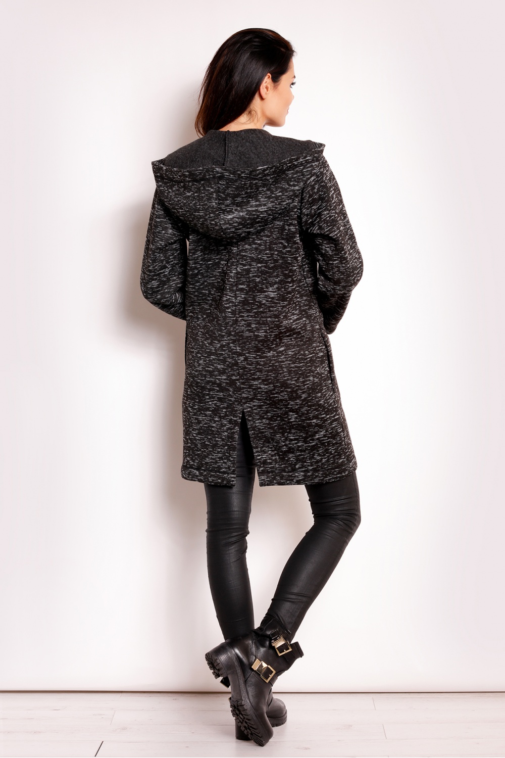 Unusual coat made of soft knitwear with long sleeves and a simple cut. The original cut makes the model fall loosely. Wide collar, hood and deep pockets. Express zip. A very elegant proposition that will add originality to every styling.
