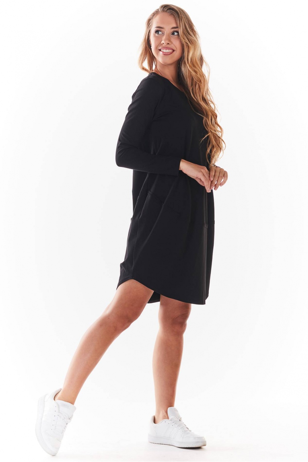 Dress made of thin knitwear. Long-sleeved dress combined with a ramon jacket and sporty shoes will create an interesting styling for any occasion. Unfinished elements and a cut-out bottom add character to the dress. Designed and sewn in Poland.
