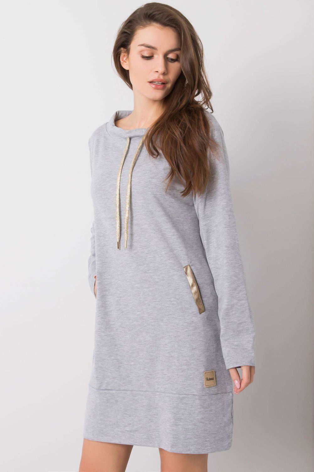 Long sleeve cotton dress in grey. Slip pockets on the sides. Ideal for everyday wear.