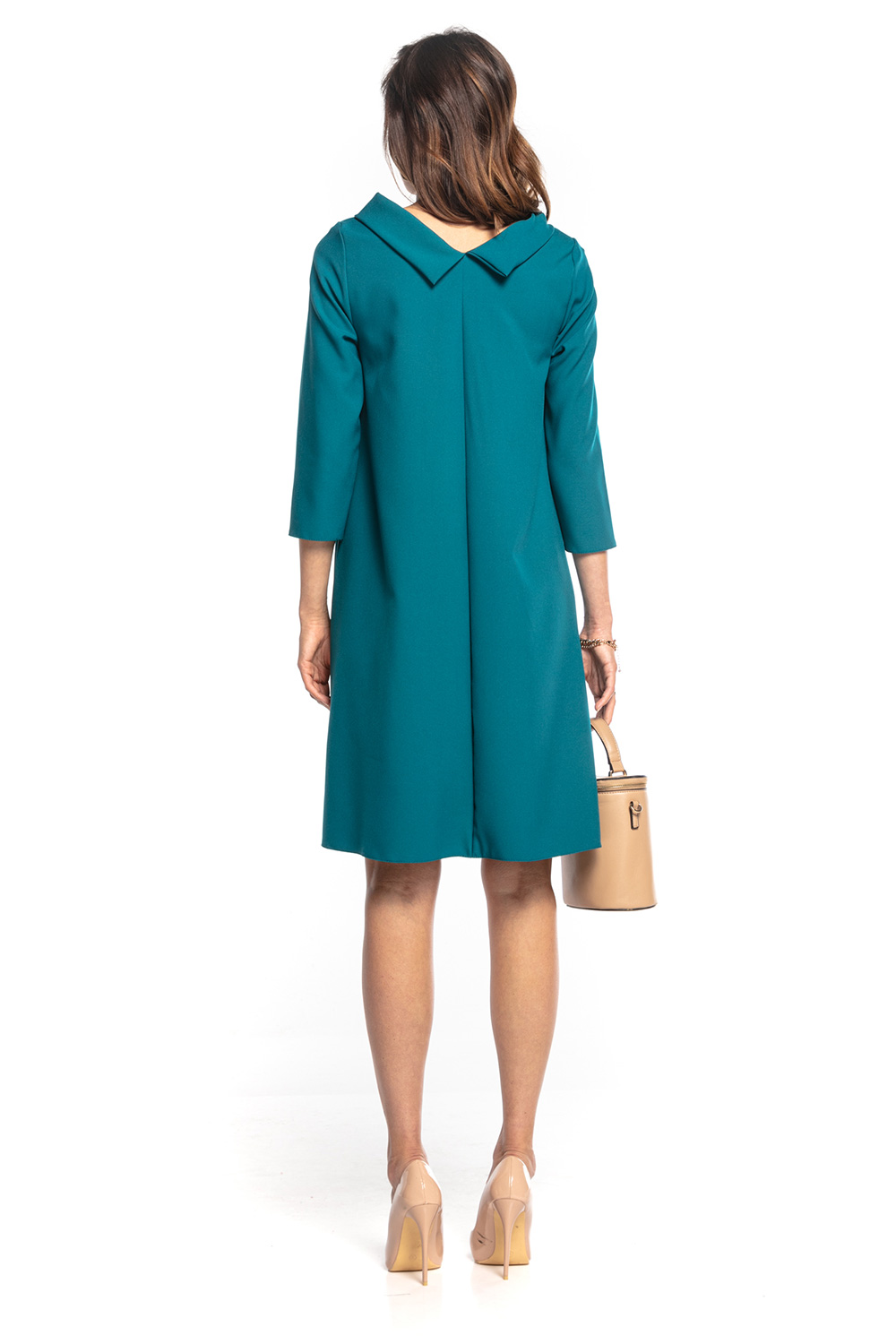 Elegant trapeze midi dress with 3/4 sleeves and folded collar in Jackie Kennedy style.