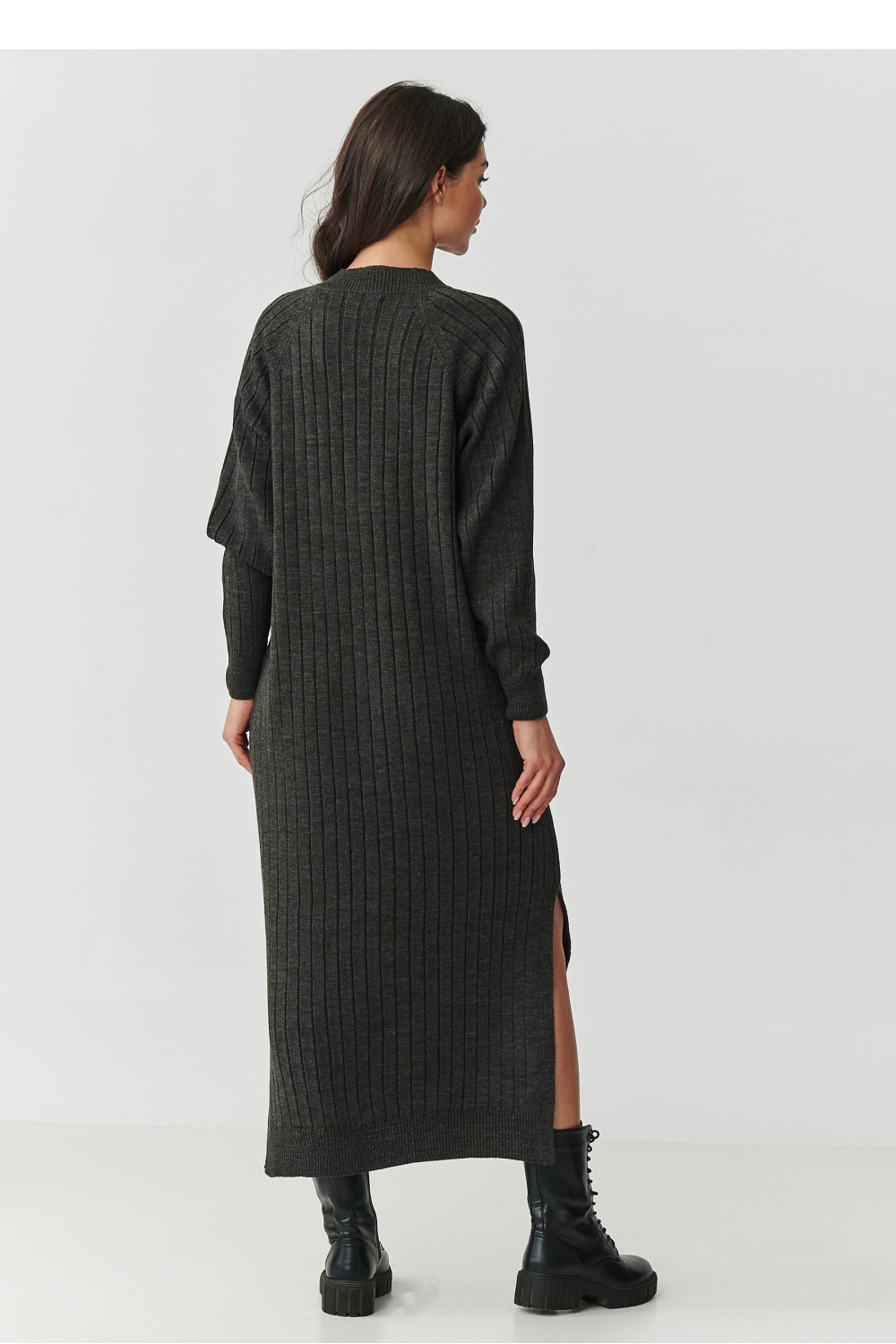 Choose exceptional elegance and maximum comfort! This long sweater dress with a ribbed knit is the perfect choice for cooler days, combining timeless style and comfort in which you will feel feminine and fashionable. Made of 100% high-quality acrylic, it is soft, pleasant to the touch, and easy to care for. The loose fit with a V-neck beautifully emphasizes the silhouette, and practical side slits add lightness and freedom of movement. The dress pairs perfectly with both elegant ankle boots and heavier military-style boots, creating outfits from casual to more bold. Available in several muted colors: black, cappuccino, chocolate, graphite melange, and grey melange, making it easy to choose the perfect shade for your style. This dress is perfect for everyday wear, for work, and for evening meetings, always looking fashionable and feminine in it.