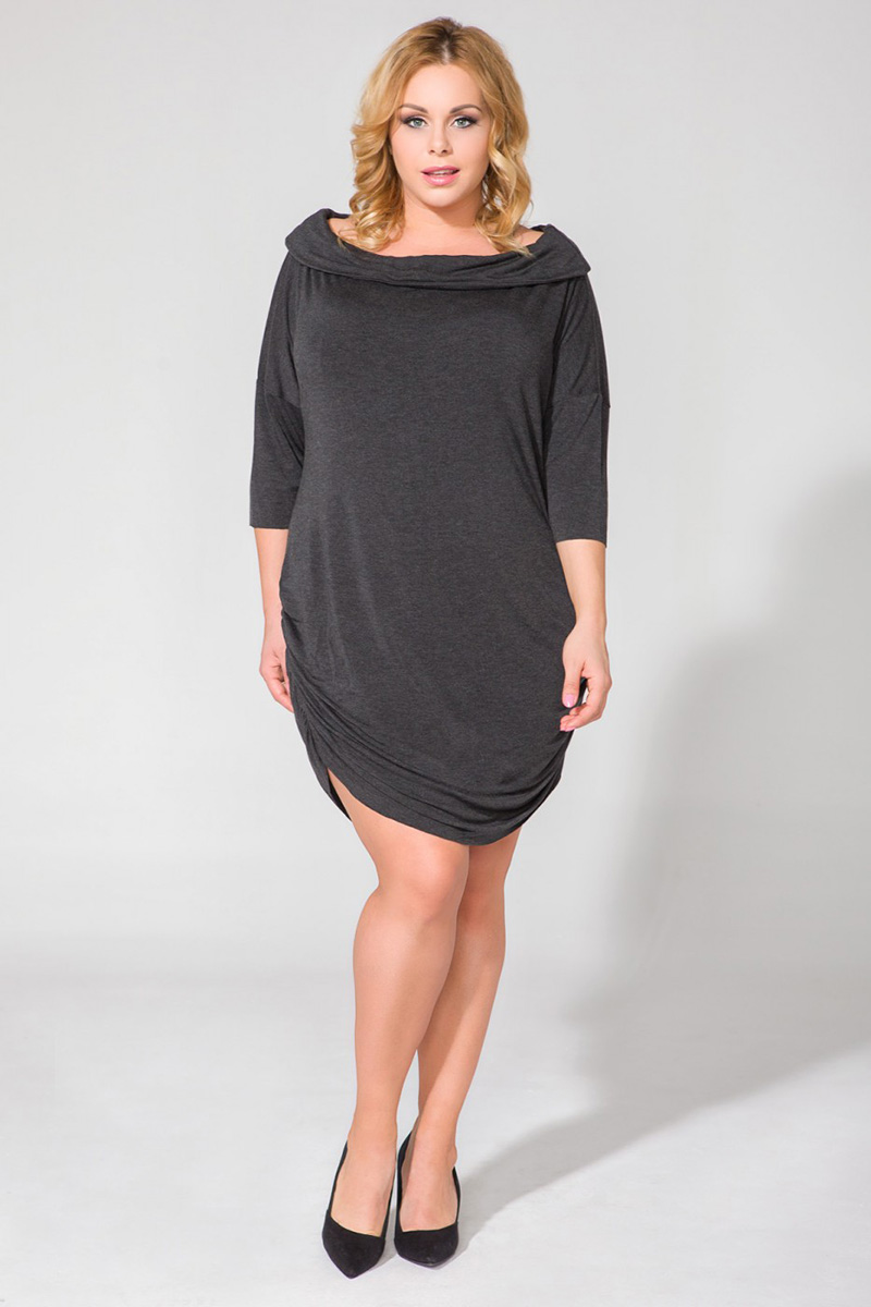 Knitted dress with wide turtleneck. Creased at the sides. Sleeve 3/4 finished with a welt. Bottom left in the raw state.
