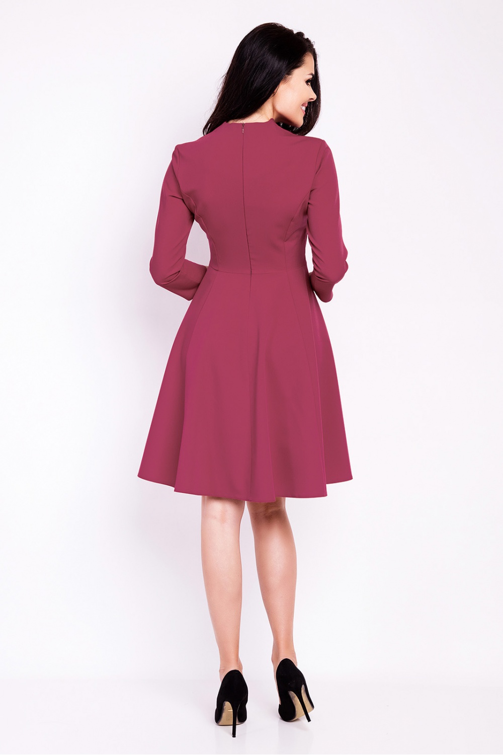 Elegant yet simple dress with a flared bottom. Dress with 3/4 sleeves, neckline with a small slit. Dress fastened with a covered zipper. Ideal for many occasions.