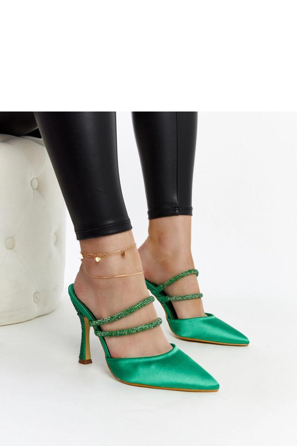Elegant and stylish green high-heeled sandals Raffaelina are a perfect choice for summer. Made of high-quality fabric, they have a height of 10 cm, which adds chic and elegance to them. The sole is made of durable beige synthetic material, ensuring comfort during use. Slip-on closure makes them easy to put on and comfortable to wear. An ideal addition to the summer collection wardrobe.