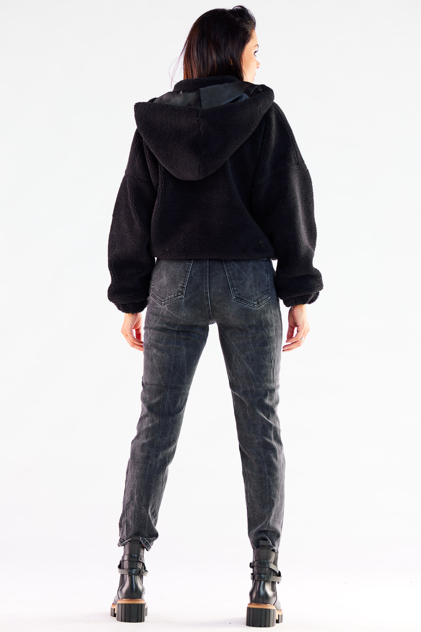 Zippered jacket with hood, made of pleasant, warm material. It will be perfect as an outer garment in autumn. Finished with a ribbed hem. This jacket can be an excellent basis for any styling. The jacket is fully lined. The product is made in Poland.