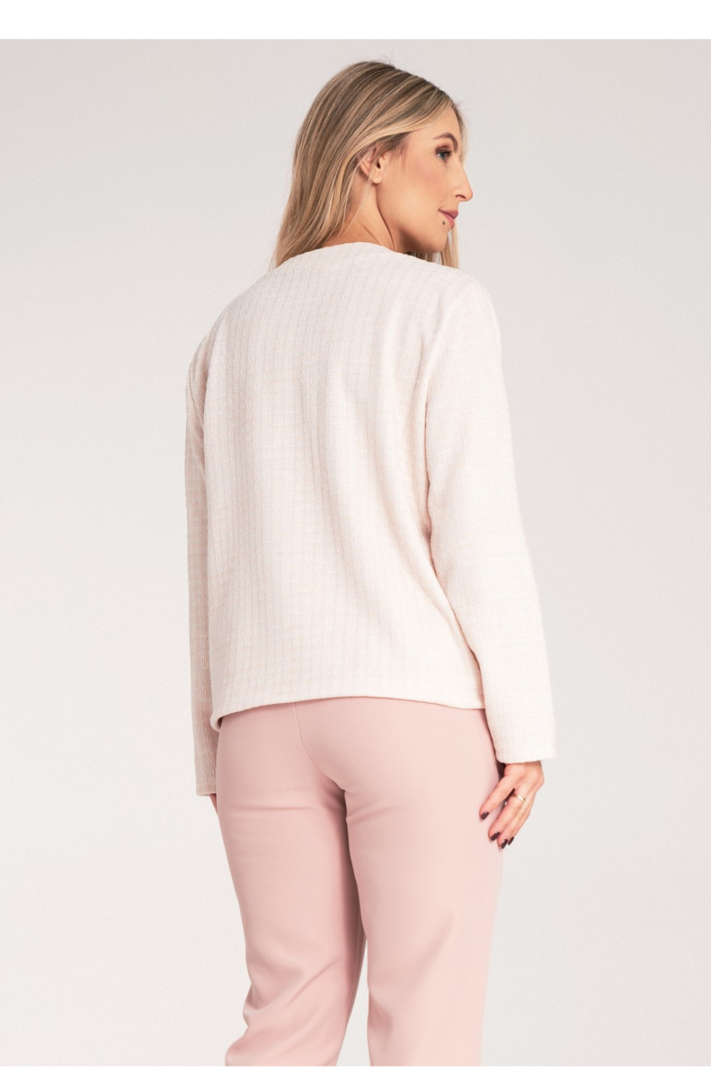 Classic checked blazer inspired by Chanel. Blazer made of textured tweed-like material. Fastened with golden decorative buttons. With sewn-in slip pockets.