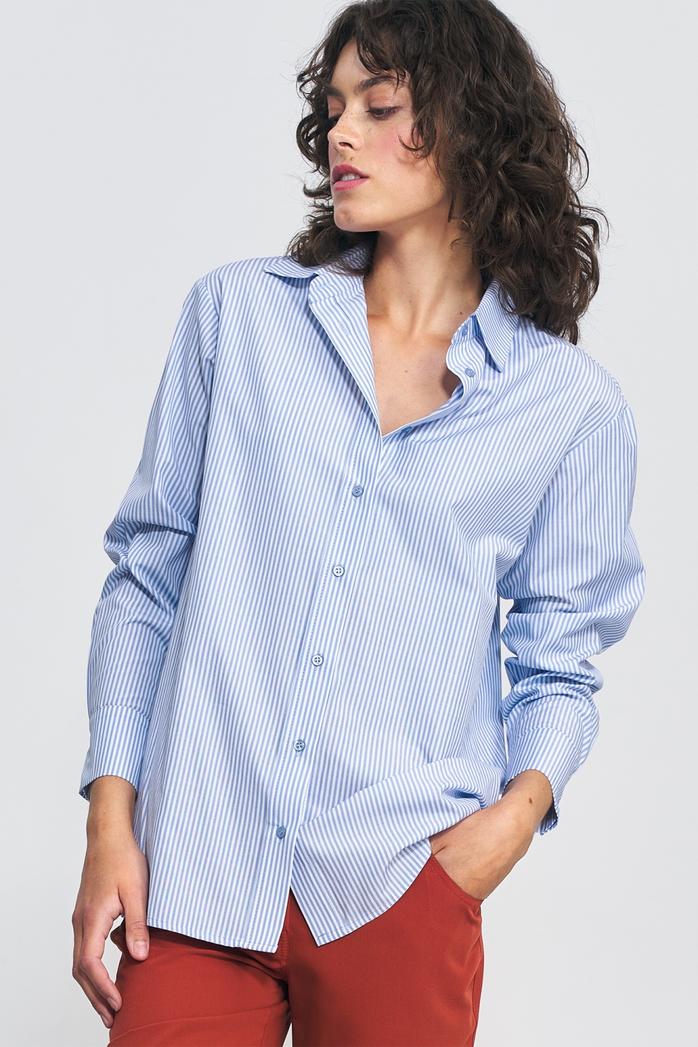 A delicate striped collar shirt is the perfect complement to #softoffice styling. Pleasant to the touch material, the composition of which is 60% cotton, provides high comfort of wearing. In turn, the practical cut fits perfectly to the body and allows you to enjoy all day not only a striking appearance, but also comfort.