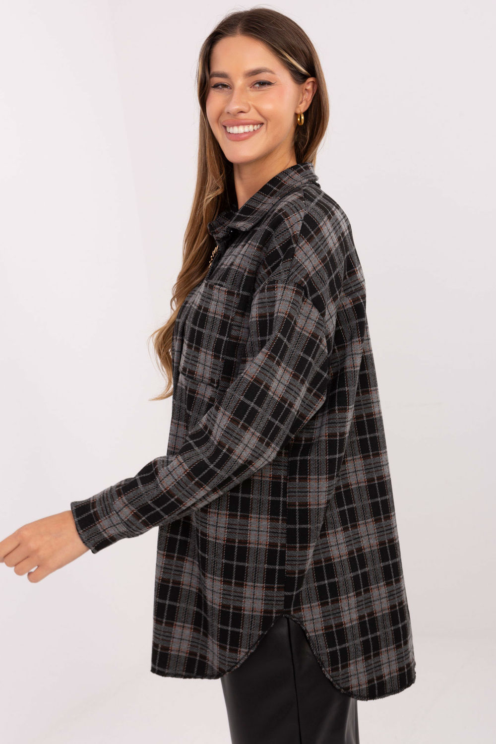 Stylish and comfortable flannel women’s shirt, combining a casual character with elegance suitable for work and everyday styling. Made of high-quality polyester, viscose, and elastane blend, it provides comfort, gentle elasticity, and durability. The model has a standard length, long sleeves, and a classic collar, and the button closure allows for adjusting the neckline and fitting the silhouette. The checkered pattern gives the shirt a timeless, fashionable character, and the chest pocket and detachable brooch add a functional and stylish accent. This is a versatile proposal that will work great in everyday casual stylings as well as in work outfits, combining comfort, fashionable look, and elegant details.