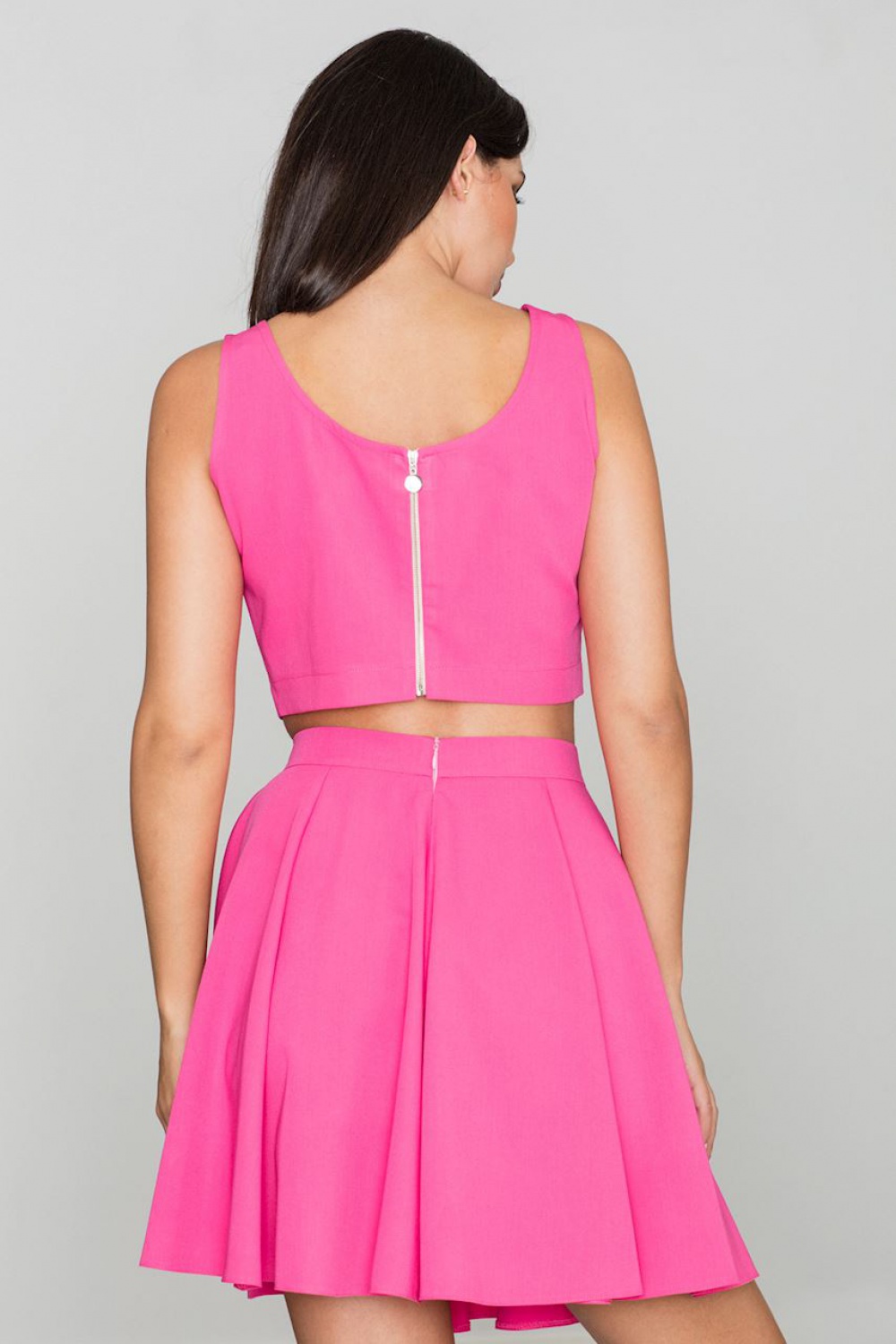 Short, loose top with a flared skirt in wedges. Top with silver decorative zipper at back adds elegance. The loose fit of the skirt adds comfort of everyday wear. A set for women who like to stand out from the crowd, trendy and feminine.