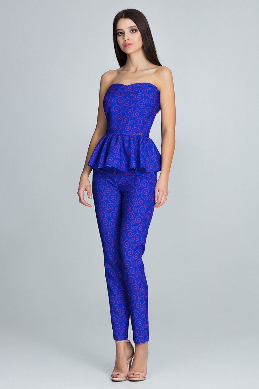 An elegant set of straight trousers with a corset finished with a frill will make you look clear and feminine.