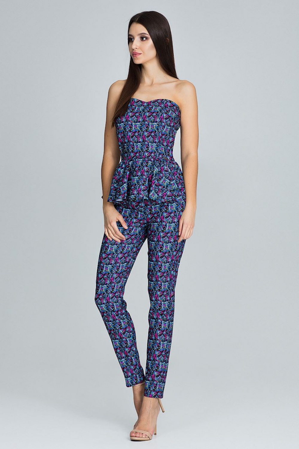 An elegant set of straight trousers with a corset finished with a frill will make you look clear and feminine.