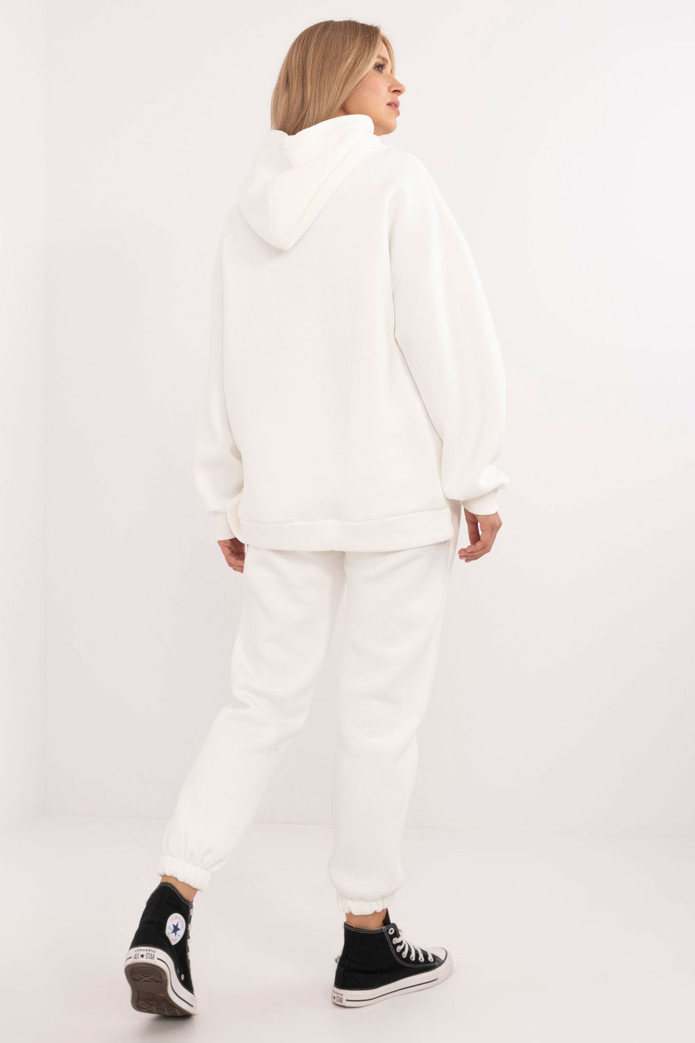The warmed-up women’s casual sweatshirt set, ideal for everyday colder days, consists of a sweatshirt and pants. The set is made of a soft and warm blend of cotton and polyester for comfort and durability. The sweatshirt has long sleeves, a hood and a large, practical kangaroo pocket, which adds a sporty touch and functionality. Thanks to its insulation, the sweatshirt is ideal for cold days, and its plain pattern adds a classic, versatile look. The long-leg pants, which end in ribbed cuffs, have a high waist to accentuate the waist and ensure comfort. There is a tie at the waist for a perfect fit. In addition, the pants have slip-in side pockets, making them a practical choice for everyday wear. The whole set combines style, comfort and warmth, being an excellent choice for casual styling.