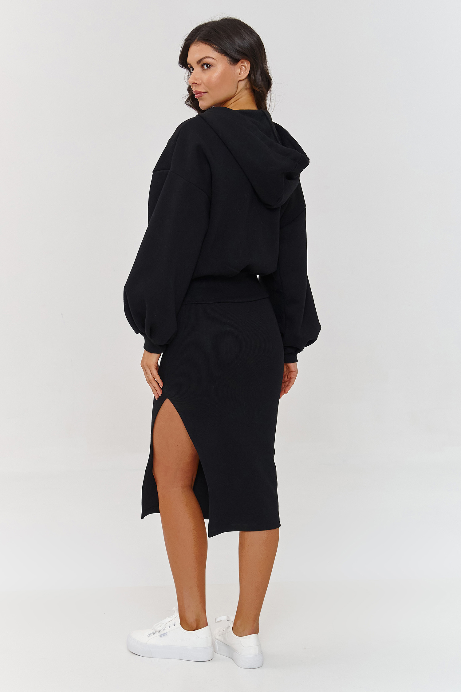 One set, many possibilities! A sleeveless striped dress and a zip-up hoodie make up a set created for women who value comfort and versatility. Thanks to these two elements, you can adjust your outfit to any season – wear the dress alone in the summer, and complete the look with a warm hoodie on cooler days. The striped dress – fits the silhouette, accentuates the shapes, but does not restrict movement, and the additional side slit adds femininity and sensuality. The hoodie with a hood has a comfortable closure, making it suitable for many outfits. Additionally, it is made of thicker sweatshirt material, making it so versatile that you can use it as a complement to your outfit for any season. The hoodie is designed in a loose, oversized cut, providing full freedom of movement, and the ribbed cuffs and hem add a trendy design to the whole look. Wear the dress alone on warmer days and enjoy a light, feminine look. When it gets cooler, simply throw on the hoodie with snaps to create a casual, practical outfit, perfect for work, a walk, or quick shopping. You can wear these items together or separately, pairing them with other clothing like sneakers, ankle boots, or sneakers. This set goes with everything! Choose a stylish and functional set that will adapt to your lifestyle!