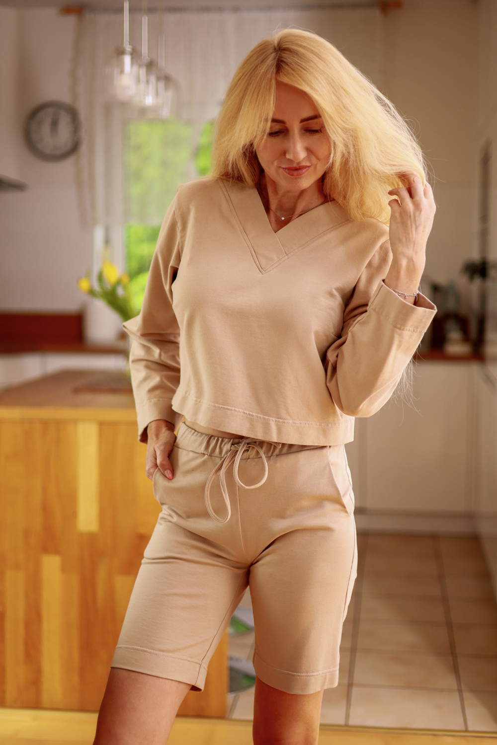 The set consists of Diego shorts and a hoodie. The material they are made of is cotton sweatshirt fabric with added elastane. It is extremely comfortable to wear and retains its properties even after prolonged use. The Diego sweat suit is a proposal for fans of sporty casual style and comfort. The length of the shorts given in the table refers to the inner length.