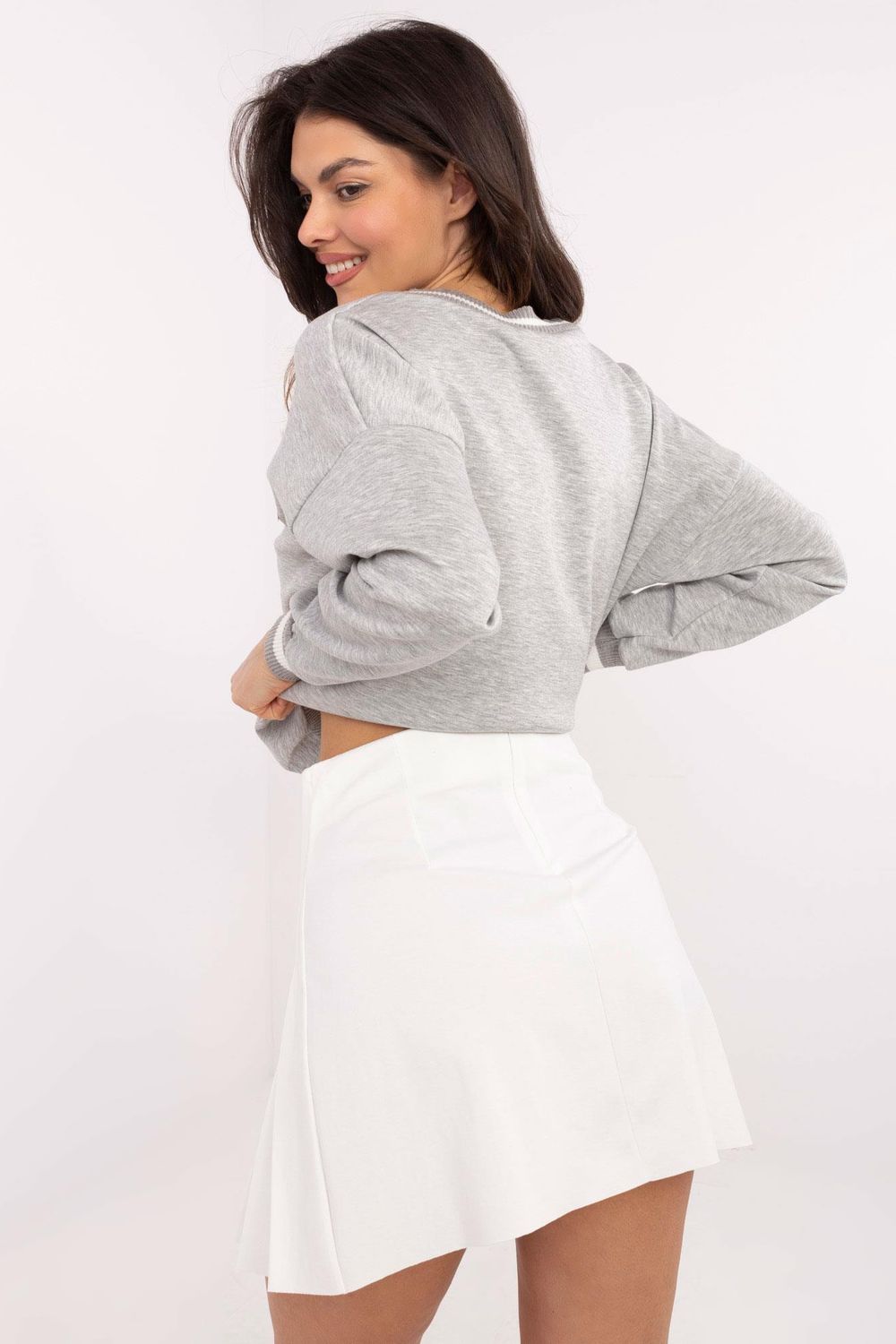 A short pleated skirt that combines elegance and everyday comfort. Fastened with a discreet concealed zipper, it ensures a perfect fit and comfortable wear. Its minimalist, smooth pattern makes it a versatile wardrobe piece that will work well for various occasions. Made of high-quality blend of cotton, elastane, and nylon, the skirt guarantees durability, wearing pleasure, and slight elasticity, providing freedom of movement. Perfect for women who value stylish appearance combined with practicality. It pairs well with shirts, blouses, or sweaters, creating diverse stylizations.