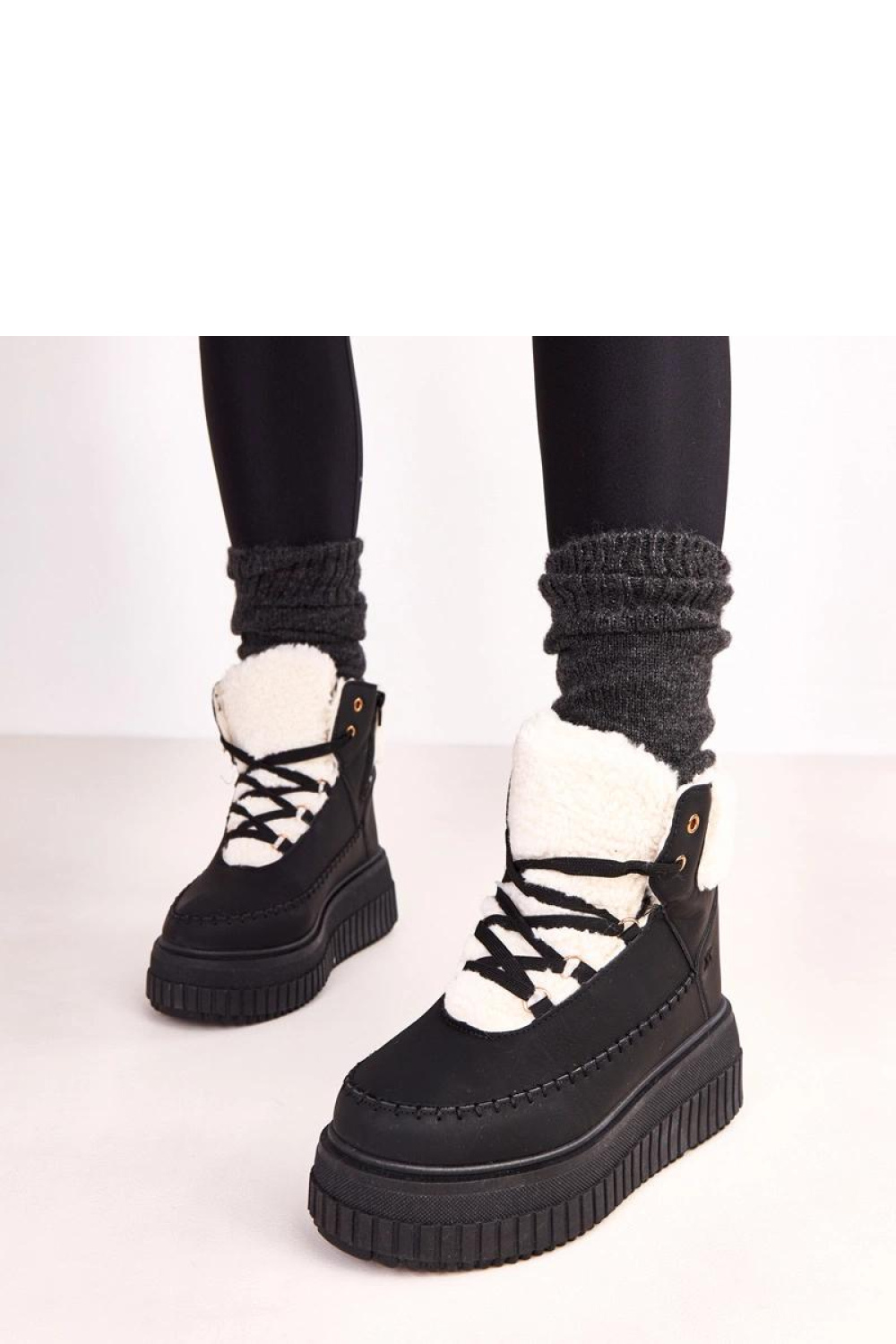 Stylish laced sport ankle boots are the perfect combination of urban casualness and everyday comfort. Made of high-quality eco-leather, they look modern and are easy to care for. The model is set on a solid platform with a height of 6.5 cm, which adds a few centimeters of height and ensures comfort while wearing. The boots have a round toe and a lining of soft fur, which guarantees warmth on colder days. Thanks to the lacing at the front and the side zipper, they can be easily adjusted to the foot and comfortably put on. The shaft reaches just above the ankle (height 12 cm), providing stability and protection, and the fabric insole increases comfort. This is a model that will work perfectly in urban stylings, both with jeans and sporty dresses.