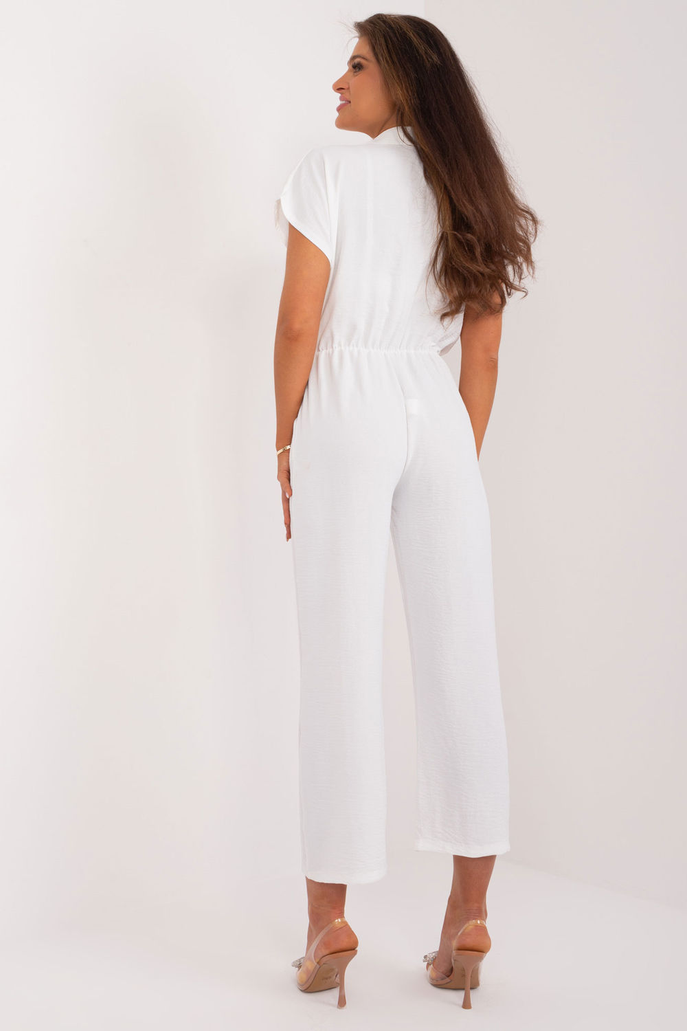 This women’s suit is the essence of elegance and comfort, perfect for everyday outings, work or business meetings. Its simple yet stylish design makes it the perfect solution for women who appreciate comfort and timeless style. Made of smooth polyester, this jumpsuit is not only easy to clean, but also provides comfortable all-day wear. There are patch pockets at chest level for a unique touch. The short sleeve and collar add elegance and class, emphasizing the feminine silhouette. The waist button closure allows you to easily adjust the suit to your figure, emphasizing it in the right places. In addition, the side slip pockets are a practical feature that provides space for small items and adds a casual touch to the suit. This women’s jumpsuit is an excellent choice for women who want to combine elegance with comfort in their daily outfits. Thanks to its versatile design, it will work well both at work and during social gatherings or evening outings.