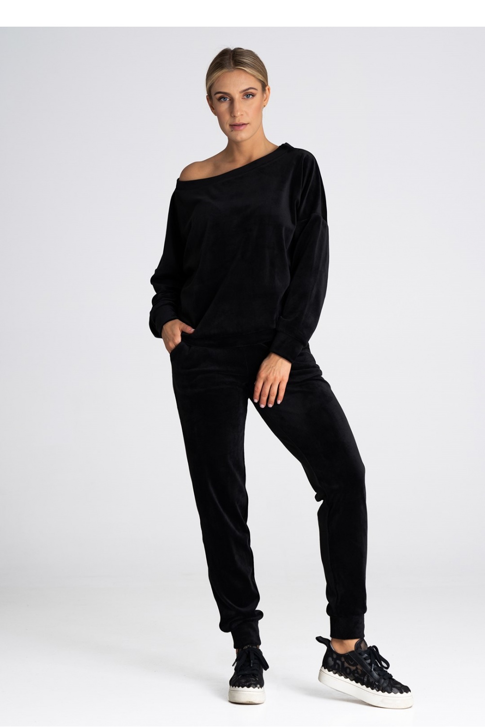 Oversized blouse with a boat neckline. It can be worn on one or both shoulders. Beautifully finished with delicate cuffs.