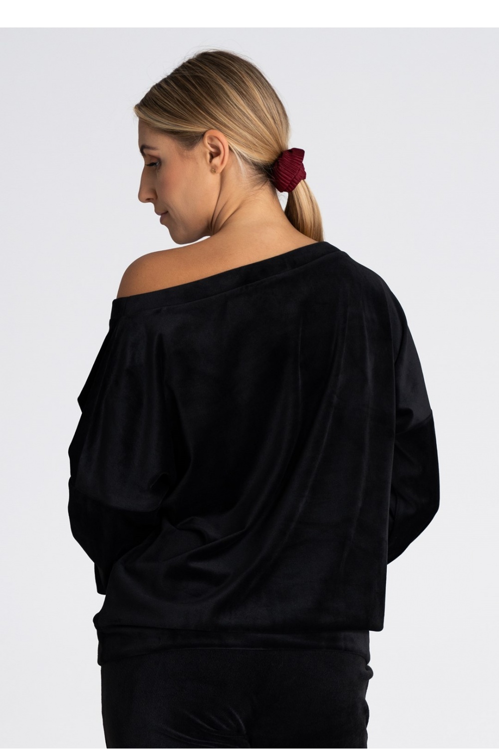 Oversized blouse with a boat neckline.