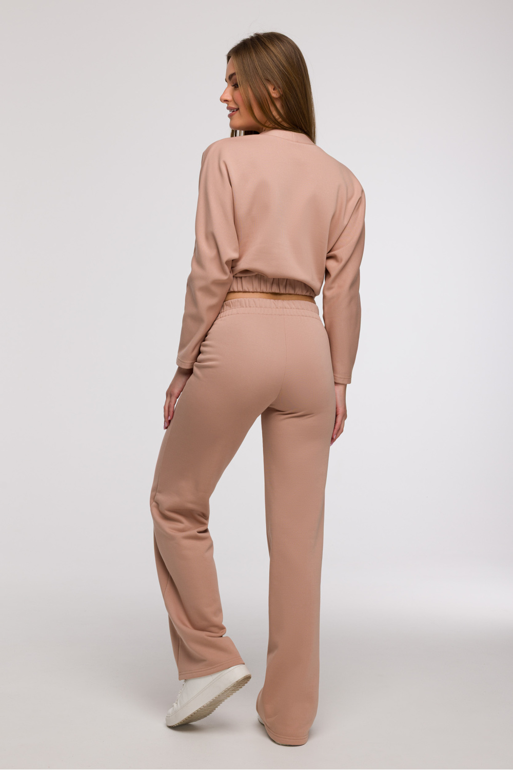 Stylish and comfortable wide-leg sweatpants are the perfect choice for women who appreciate comfort and a fashionable look. Made of single-color fabric, without additional lining, they will work well in both casual and slightly more elegant smart casual stylings. The wide, long legs with front seams give the silhouette lightness and visually lengthen the legs. The pants have a classic, normal waist and a comfortable elastic waistband closure, which ensures freedom of movement and easy adjustment. The lack of pockets emphasizes the minimalist character of the model. The cut has been designed to fit different body types, especially well suited for pear-shaped figures, helping to balance body proportions. Designed and made in Poland.